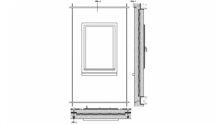 Window Sectional details, front details of window and section with text with dimensions in autocad format