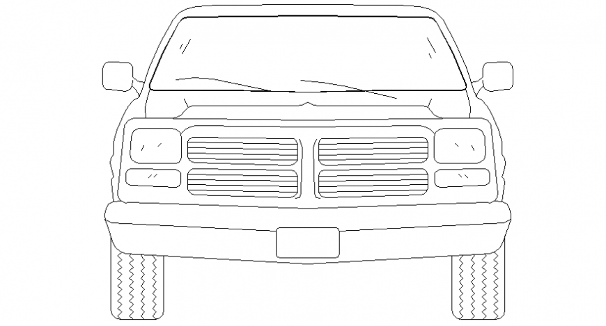 SUV model side view car. here there is front view elevation model detail of car showing detail with headlights in auto cad format
