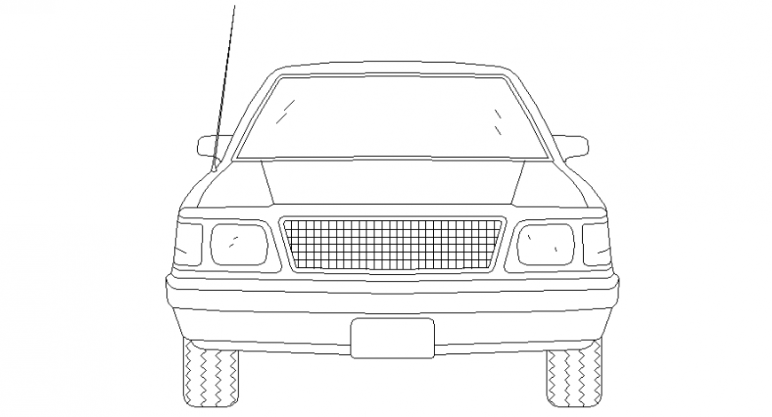 Sedan model front view car. here there is front view elevation model detail of car showing detail with elegant design model and headlights detail in auto cad format