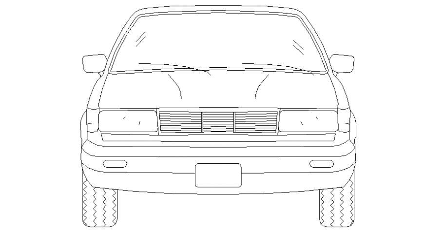 Sedan model front view car. here there is front view elevation model detail of car showing detail with elegant design model and headlights detail in auto cad format
