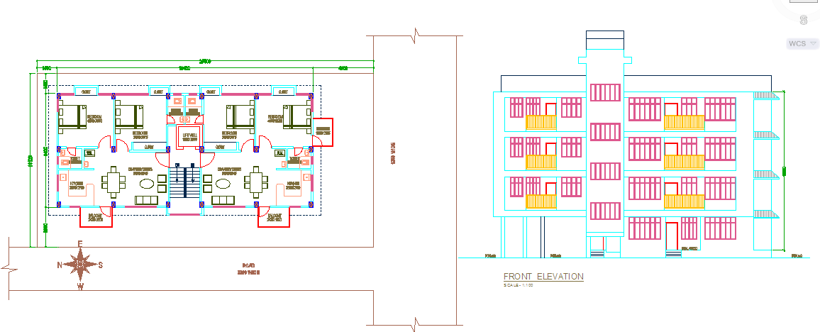 Residential Apartment Detail. apartment on one floor with common stilt parking. Floor has been detailed out as Furniture Layout Plan, Door Window design and schedule, Building Elevations and Sections.