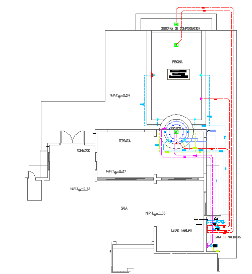 Plumbing Detail Download file. Plumbing is the system of pipes, drains, fittings, valves, and fixtures installed for the distribution of potable water for drinking, heating and washing, and waterborne waste removal.Plumbing Detail DWG file.