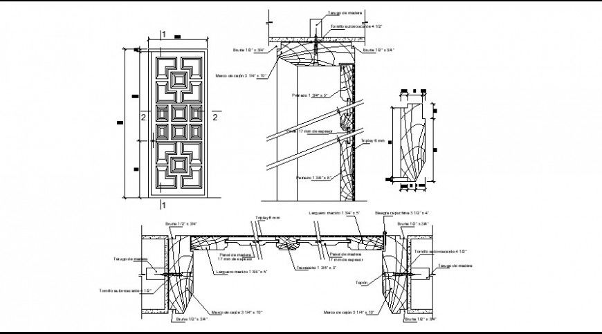 Wooden partition design 2d. his file contains details of wooden furniture detailing with maze design file and text detailing in auto cad format