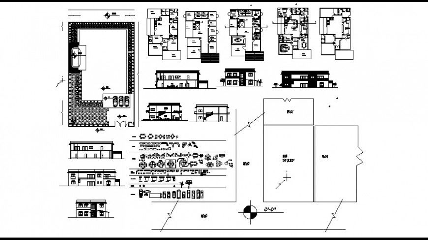 Elevation of a modern bungalow and its interior details dwg file, here there is a elevation of a modern style bungalow and its interior sectional details, staircase design , furniture detailing etc