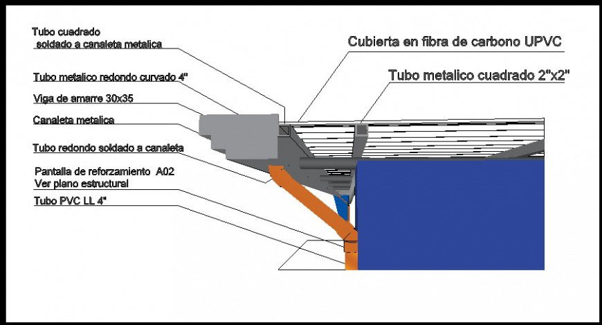 Top roof construction project file detail. here there is top view 3d detail showing depth construction detail file with all texts and details