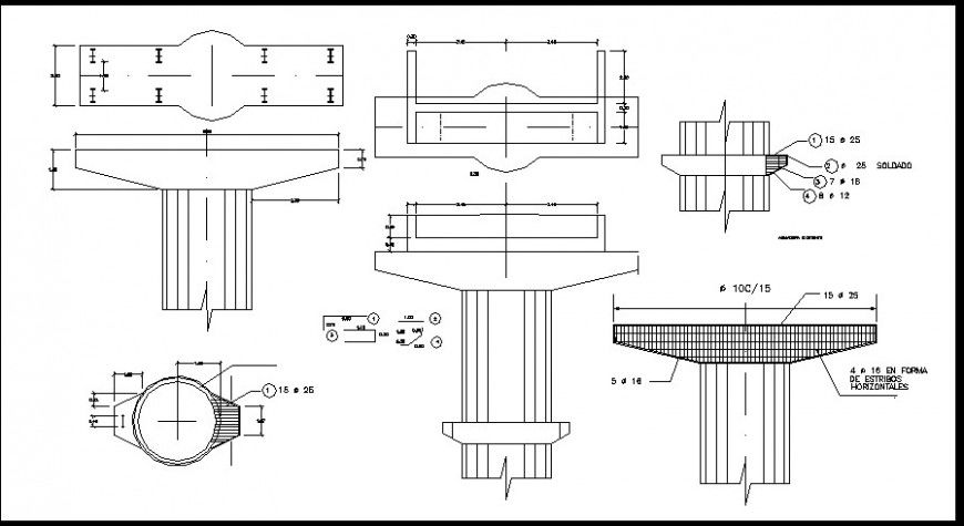 Bridge construction project 2d file. here there is front sectional elevation detail of bridge pillar construction with dimension and size and text detail