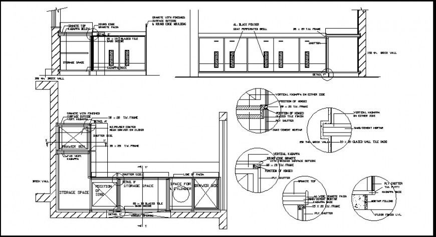 Front construction wall detail. here there is front sectional elevation detail of wall with section details in auto cad format