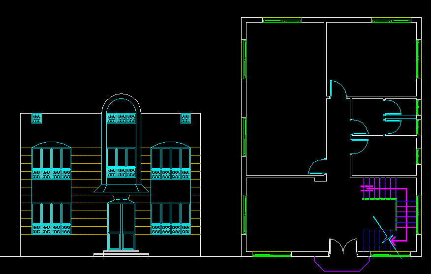 Simple House Floor Plan and Front Elevation Design in DWG File