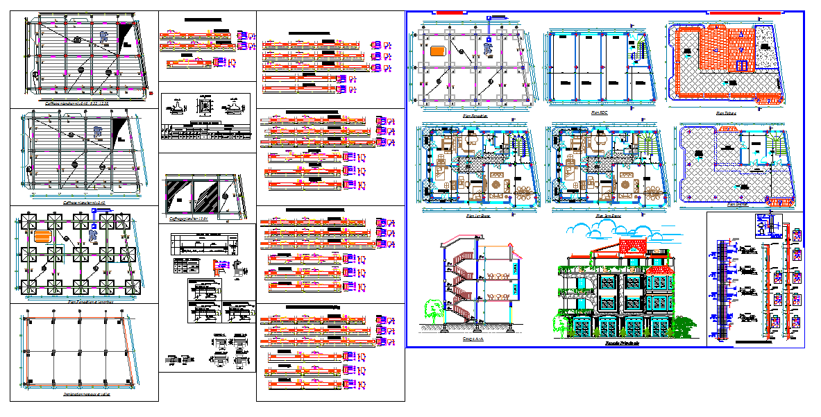 Residential House Building DWG file, Residential House Building Design. Most conventional modern houses in Western cultures will contain a bedroom, bathroom, kitchen or cooking area, and a living room. Residential House Building Detail.