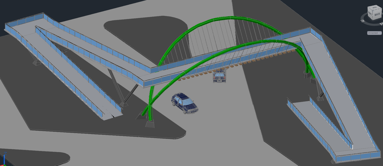 Pedestrian Bridge DWG file, Cantilever bridges are constructed using much the same materials & techniques as beam bridges. The difference comes in the action of the forces through the bridge. Pedestrian Bridge Download file.