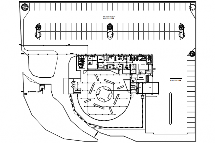Hotel architecture plan in AutoCAD file plan include detail of wall and door position main entrance elevator view, reception area dining area washing area and customer room kitchen and meeting room and door and tree position.