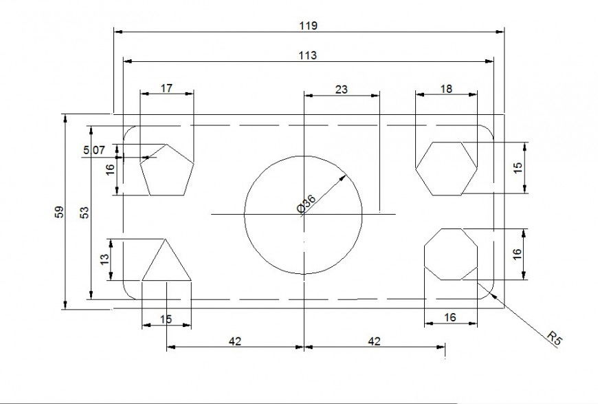 Geometrical shapes 2d detail . it shows plan detailing of circle, pentagon, hexagon ,triangle and square detailing file with diameters , sizes and measurements