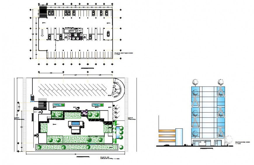 Commercial grand building elevation. here there is front elevation design of a big building , posh building, high rise building design and landscaping project file