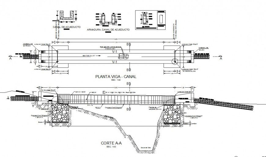 Canal construction details 2d. this file contains construction detail of a canal irrigation file and concrete filling details with text detailing and with dimensions