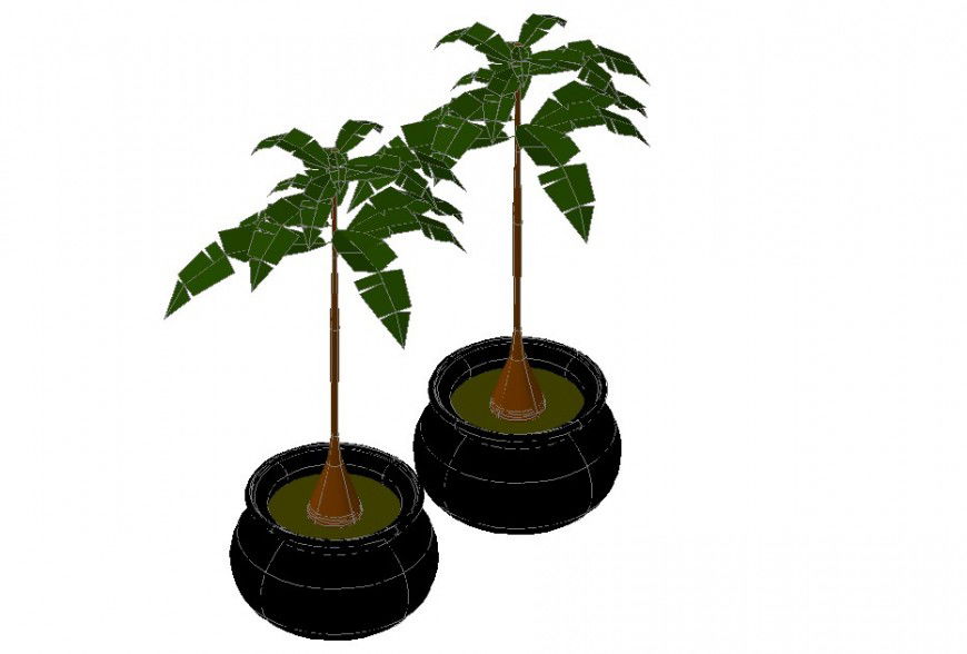 3D plants detail model. here there is 3d model elevation of plants with pot inn3d detail