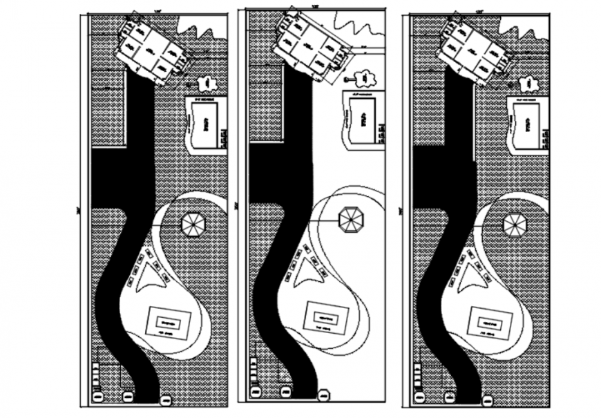 Drawing of farmhouse detail AutoCAD file which includes the layout of the farmhouse with details of the entrance, lawn, guard room, groom, bird, playground, seating area, swimming pool, passage, ch.pool, residence building.