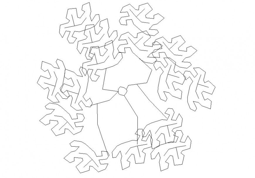 Dwg file of tree block which includes plan of tree with round leaves and branches.