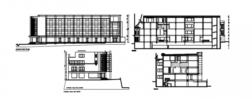 DWG of commercial building 2d details which includes sections and elevation of the building.