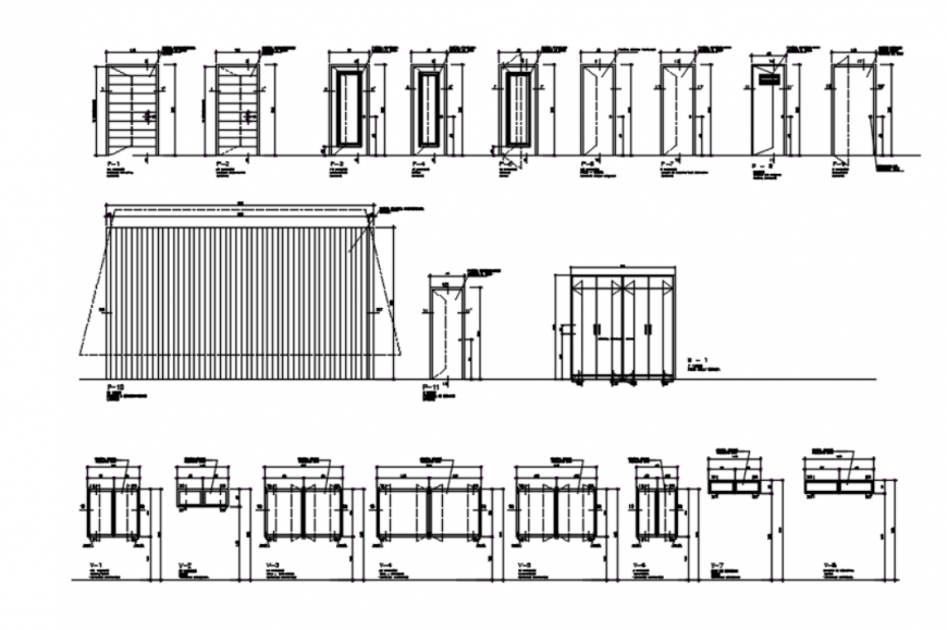 Drawing of door-window 2d details which includes elevation of the window and doors with dimension.