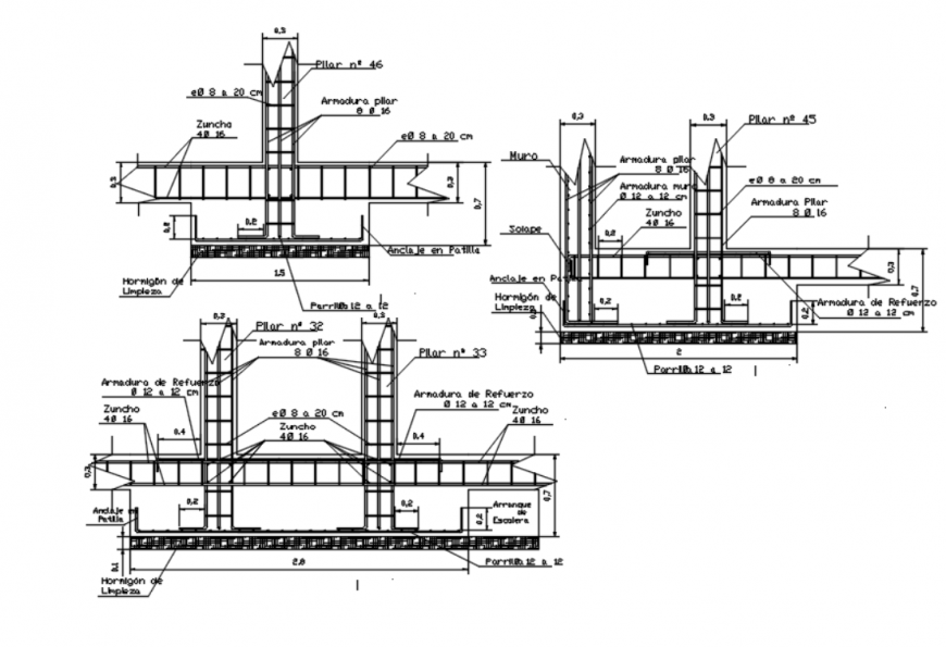 Drawing of footing detail AutoCAD file which includes a section of different types of footing.