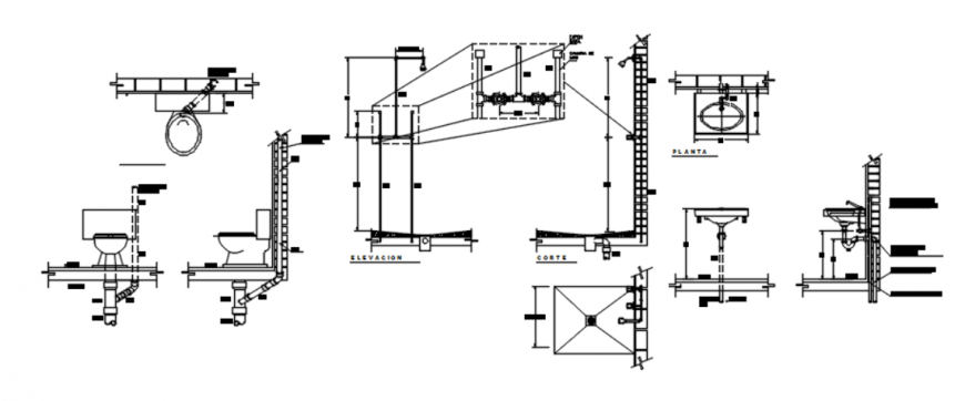 Drawing sanitary fittings detail AutoCAD file