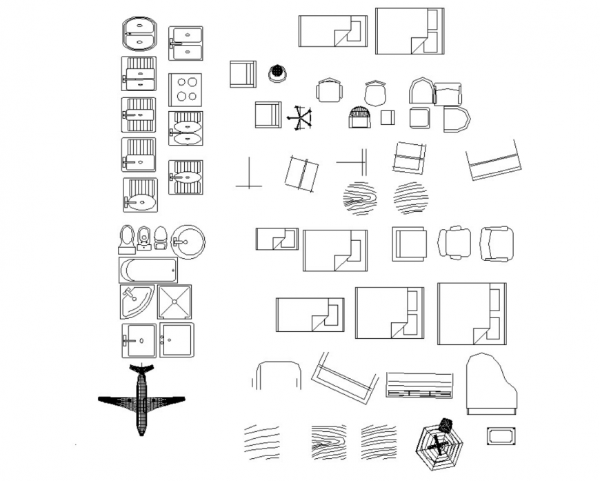 Cad blocks of furniture which includes beds, burners, indian wc, airoplan, sink, wc, bathtubs etc.